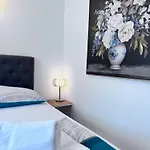Værelserne på denne ferielejlighed inkluderer en sofa, et skrivebord, kaffe- og tefaciliteter samt et fuldt udstyret køkken. På stedet er der også et flisegulv og et badeværelse med handicapvenlig brusekabine og separat toilet.